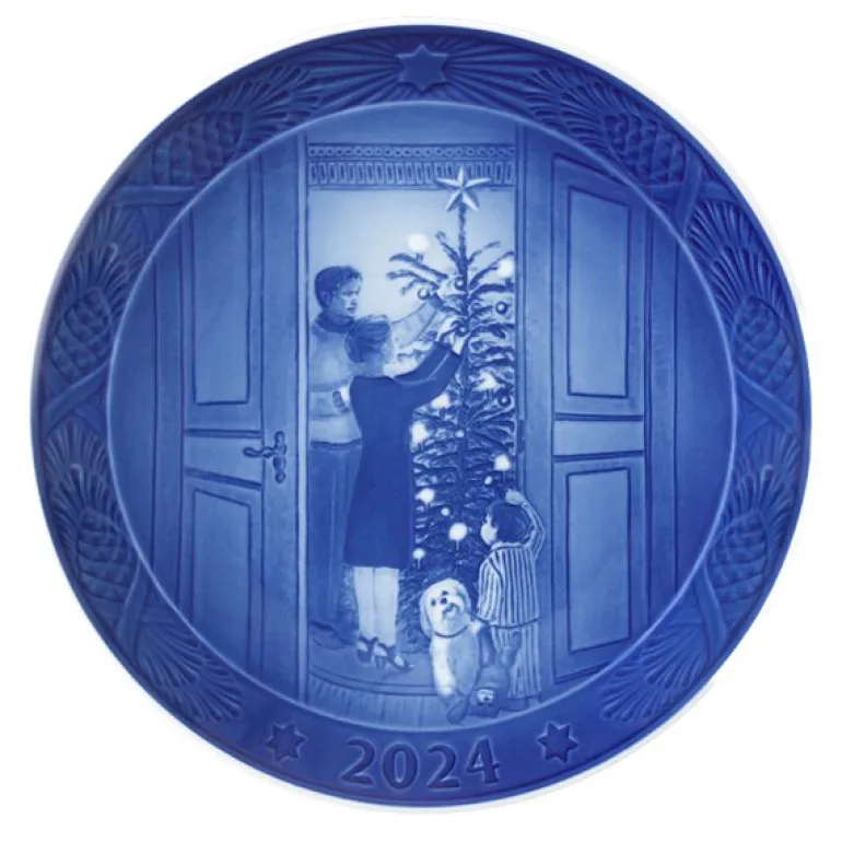 Blue Collectibles fra Royal Copenhagen er et tidløst symbol på håndverkstradisjoner og utsøkt kvalitet. I over 100 år har samlingen utvidet seg med gjenstander som har en spesiell plass både hos samlere og gavegivere. Årets Blue Collectibles årstallstallerken for 2024 viser en rørende scene der en liten gutt sammen med sin lojale hund titter spent på foreldrene som er i gang med å pynte juletreet. Denne illustrasjonen fanger den barnlige forventningen og gleden som hører julen til, og blir et vakkert tilskudd til enhver samling. Designet av Allan Therkelsen, er tallerkenen et uttrykk for både nostalgi og varme, og vil utvilsomt bringe glede til alle som verdsetter håndverk og tradisjon.
