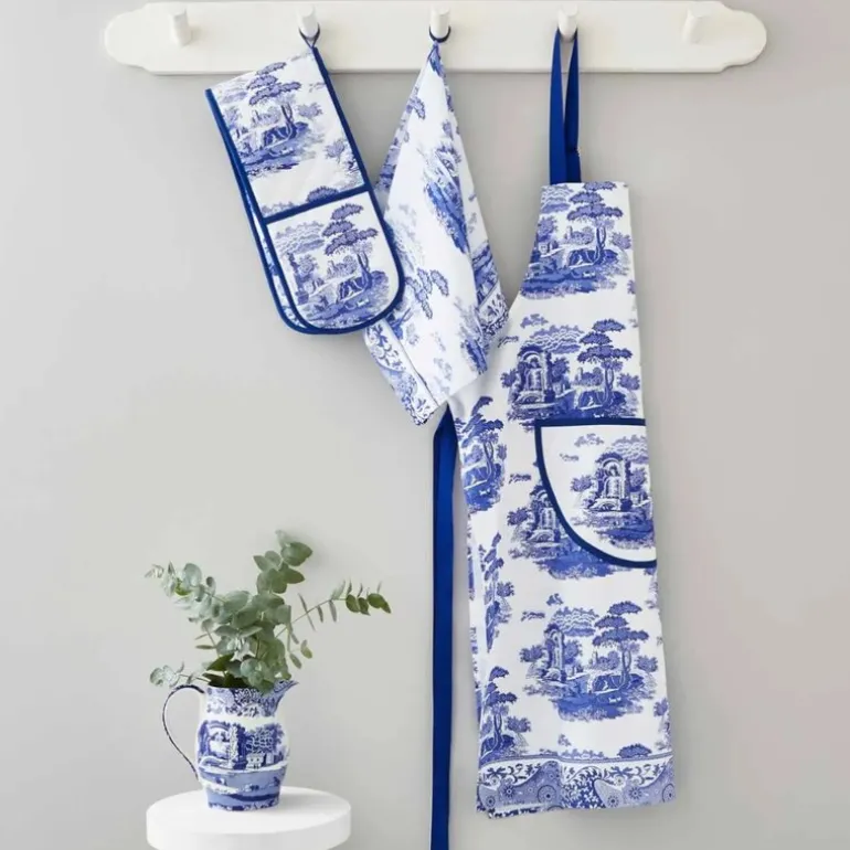 Beskytt hendene med stil med denne doble grytevotten fra Spodes tidløse Blue Italian-kolleksjon. Med sitt karakteristiske blå-hvite mønster, prydet av en intrikat Imari Oriental-bord og et italienskinspirert landskap, tilfører den både funksjonalitet og eleganse til kjøkkenet ditt.