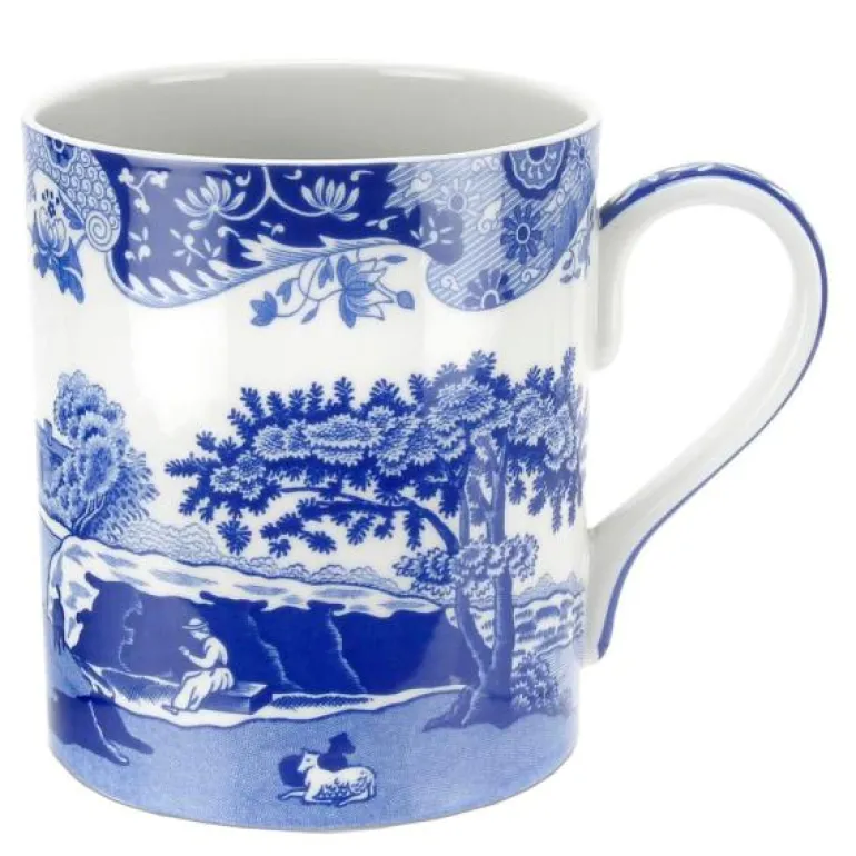 Dette romslige kruset fra Spode bringer over 200 års designarv rett til frokostbordet ditt. Med sitt karakteristiske blå-hvite motiv fra Blue Italian-kolleksjonen, kombinerer det en detaljert Imari Oriental-bord fra 1700-tallet med en naturskjønn scene inspirert av italiensk landskap.