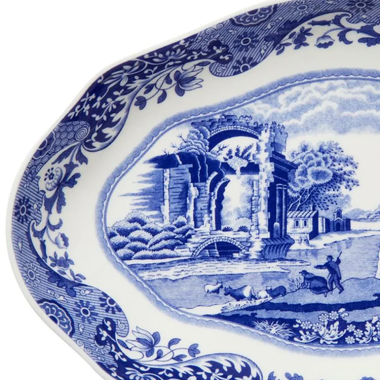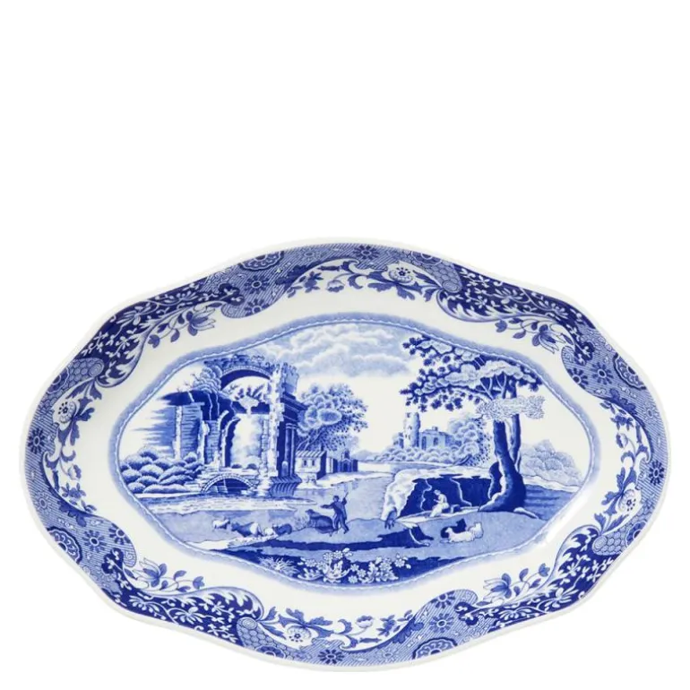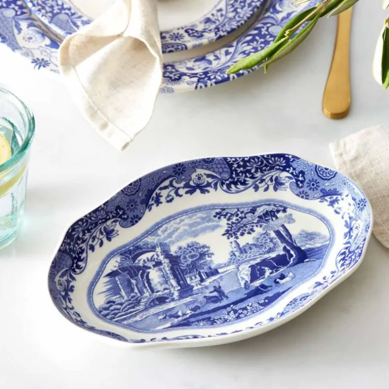 Denne elegante ovale tallerkenen fra Spodes ikoniske Blue Italian-kolleksjon kombinerer klassisk britisk design med praktisk funksjonalitet. Med sin bølgede kant og det karakteristiske blå-hvite mønsteret, tilfører den tidløs sjarm til ethvert bord. Tallerkenen er laget av førsteklasses porselen og er perfekt til både hverdagsbruk og spesielle anledninger.