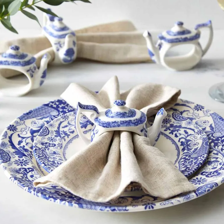 Fullfør borddekkingen med dette unike settet med fire Blue Italian-serviettringer fra Spode. Inspirert av den ikoniske tekannen i samme serie, er hver serviettring utformet med miniatyrdetaljer som pipe, lokk og hank – alt dekorert i det klassiske blå-hvite mønsteret som har vært elsket siden 1816.