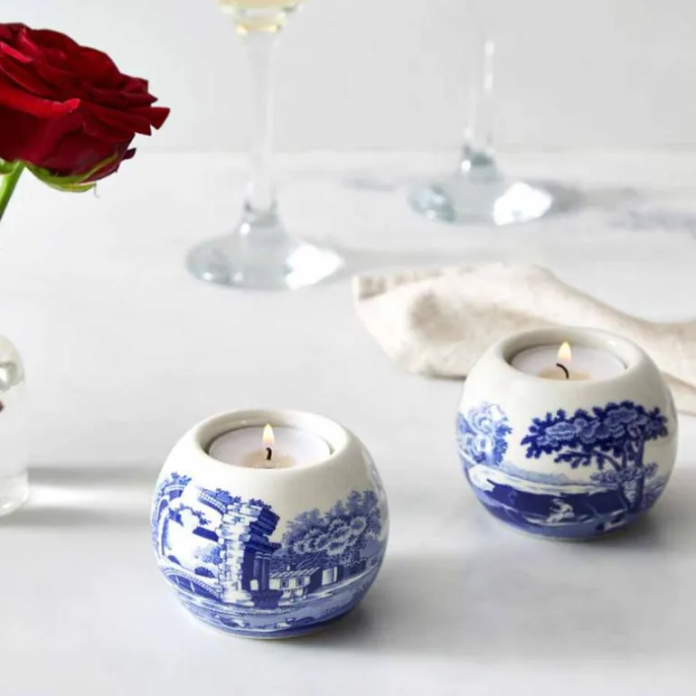 Skap en varm og innbydende stemning i hjemmet med dette settet med to telysholdere fra Spodes klassiske Blue Italian-kolleksjon. De elegante porselensholderne er dekorert med det ikoniske blå-hvite mønsteret som har vært elsket siden 1816, og gir et raffinert uttrykk til både hverdag og fest.