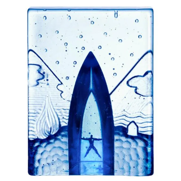 Blues Sculputure fra Kosta Boda. Blues er ett objekt med motiv av ulike figurer i glasset som er klassisk for Bertil Vallien. Objektet fra Kosta Boda Artist Collection støpes på Kosta Glasbruk.