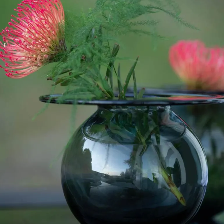 Med sin fine krage holder vasen blomstene på plass og hjelper dem med å stå elegant. Vasen har stor kapasitet og rommer mye vann, noe som bidrar til at blomstene holder seg friske lenger. Vasen er laget av høykvalitets glass og er munnblåst og håndlaget av erfarne glassblåsere med lange tradisjoner innen håndverket. Hver vase er unik og bærer Finn Schjølls karakteristiske signatur på kragen.