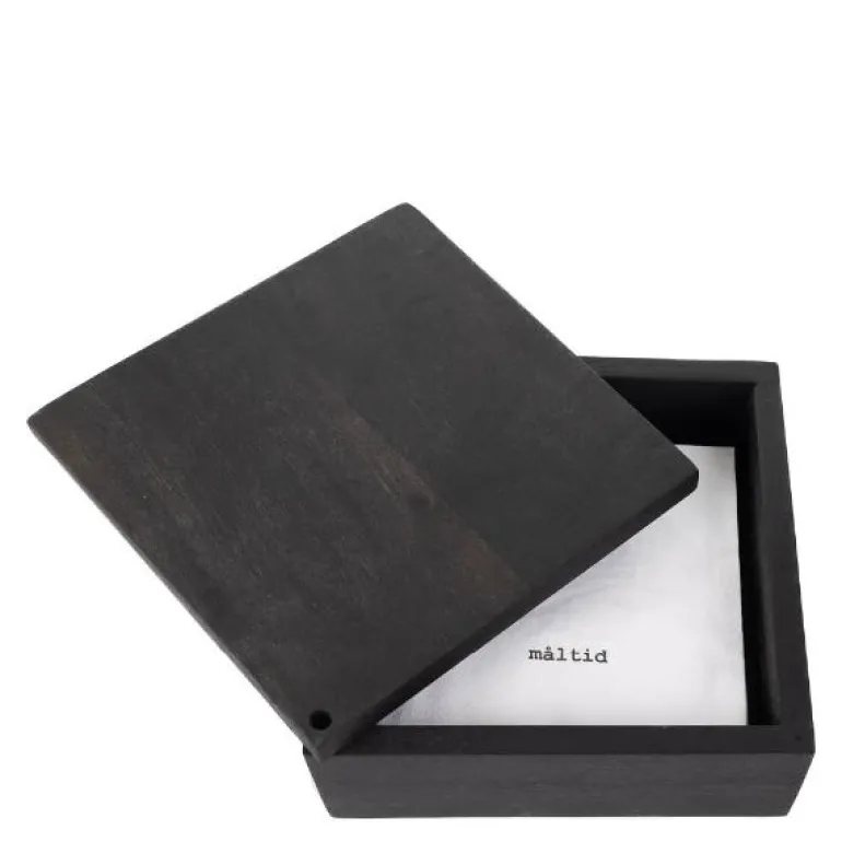 Sort boks m/lokk i akasietre. Tre fra akasietre har de naturlige fordelene som hardhet og slitestyrke.