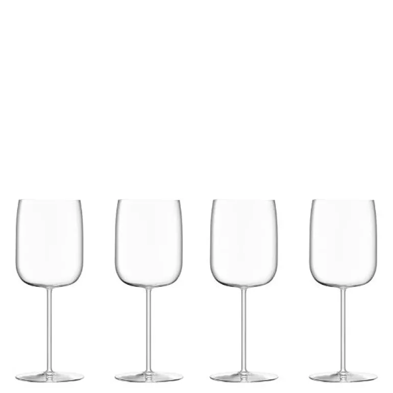 Dette settet med fire vinglass fra LSA Internationals Borough-serie kombinerer moderne design med praktisk bruk. Hvert glass rommer 38 cl og har rette sider og en smal stett, som gir et lett og elegant uttrykk. Den avstemte formen gjør dem velegnet til ulike vintyper.