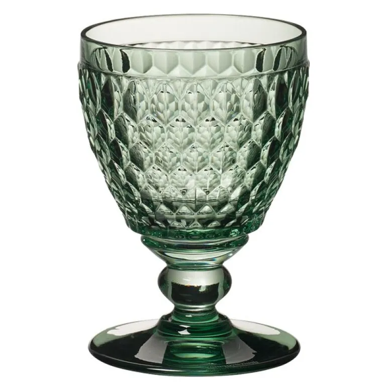 Boston hvitvinsglass grønn på 23 cl kombinerer klassisk design med moderne detaljer. Det fasettmønstrede krystallglasset reflekterer lyset på en elegant måte og gir borddekkingen et sofistikert uttrykk. Perfekt til en lett hvitvin eller andre forfriskende drikker.