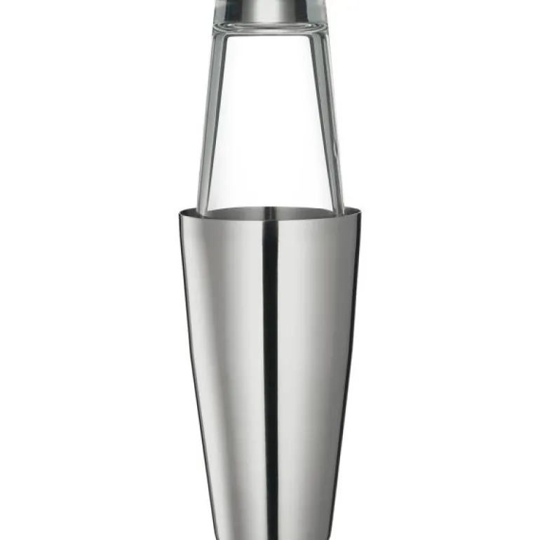 Shakeren består av slitesterkt glass og ekstra tynnvegget blandekopp laget av sateng rustfritt stål. Plasser metallkoppen forsiktig over glasset og rist. Den avtagbare gummiringen på glasset forbinder topp og bunn slik at du ikke søler under bruk.