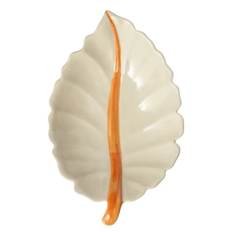 Botanica serveringsfat fra Stiernholm gir et unikt og naturlig preg til borddekkingen din. Med sin bladformede design og varme oransje fargedetalje blir dette steintøysfatet både funksjonelt og dekorativt. Det organiske utseendet skaper en følelse av harmoni og er perfekt til å servere snacks, småretter eller som et iøynefallende element i interiøret. Enten det er til hverdag eller fest, tilfører fatet en sofistikert touch som løfter bordets helhetlige uttrykk.