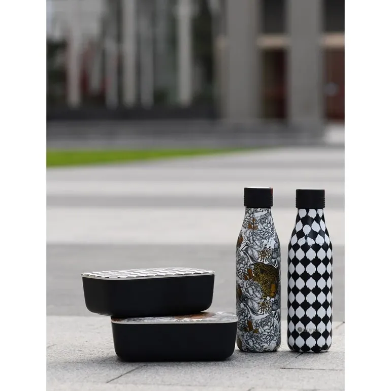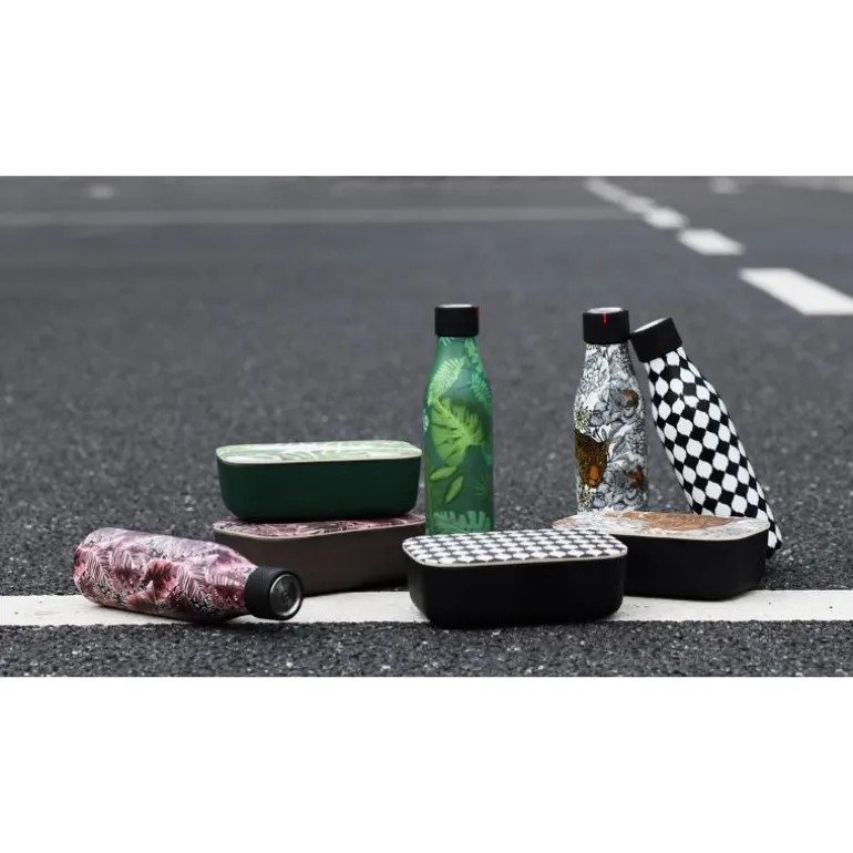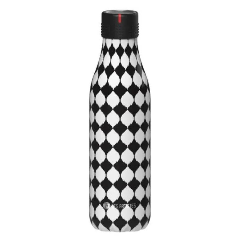 Bottle Up design er en serie med flotte mønster, design og farger. Drikkeflaske med vegger av flere lag av temperaturbevarende materialer, deriblant kobber. Holder drikkevarer varm i 12 timer og kald i 24 timer. Korken i rustfritt stål og silikon er formet som en klokke. Her kan du vri til klokkeslettet når du fyller flasken og holder kontroll på ca. temperatur på innholdet utover dagen. Stor åpning som gjør det lett å tilsette isbiter. Flasken er ikke beregnet for drikkevarer med kullsyre. Flasken bør rengjøres for hånd, for å ivareta utsidens overflate. Korken skylles i varmt vann.