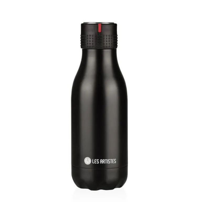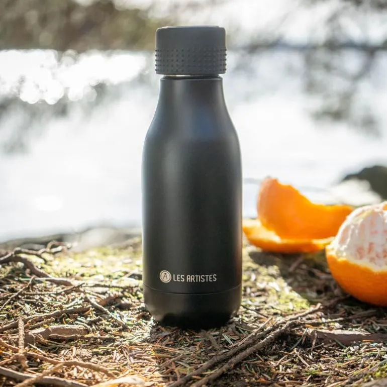 Drikkeflaske med vegger av flere lag av temperaturbevarende materialer, deriblant kobber. Holder drikkevarer varm i 12 timer og kald i 24 timer. Korken i rustfritt stål og silikon er formet som en klokke. Her kan du vri til klokkeslettet når du fyller flasken og holder kontroll på ca. temperatur på innholdet utover dagen. Stor åpning som gjør det lett å tilsette isbiter. Flasken er ikke beregnet for drikkevarer med kullsyre. Flasken bør rengjøres for hånd, for å ivareta utsidens overflate. Korken skylles i varmt vann.