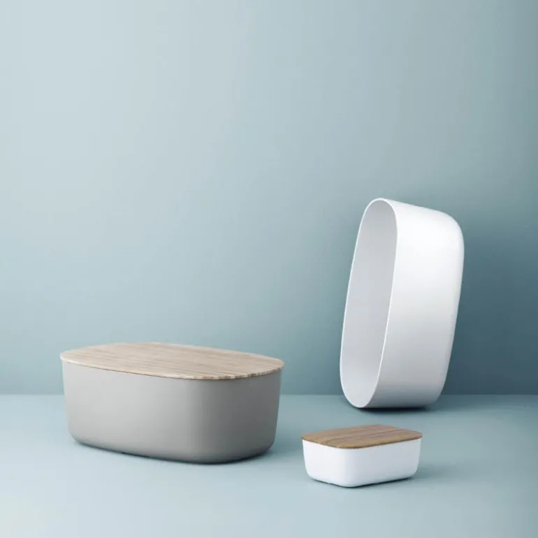 Brødboksen har blitt en klassiker i RIG-TIG sortimentet og produseres i flere farger. Bambuslokket kan brukes som skjærefjøl og bør oljes med vegetabilsk olje før bruk og ved behov for å optimere levetiden.