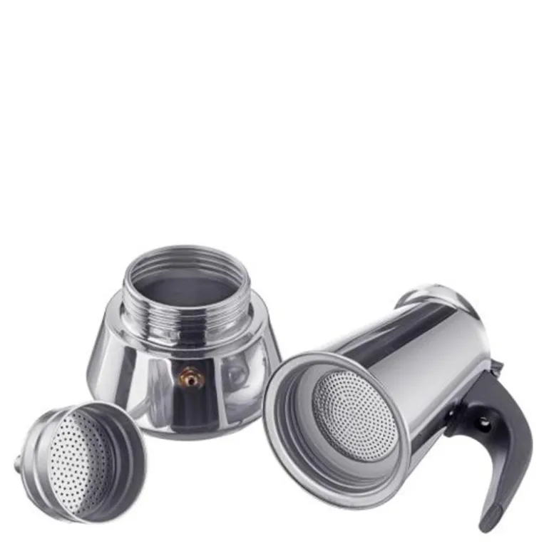 Med Espresso Maker Brasilia Plus lager du fantastisk god Espresso!Enkel i bruk – fyll den nederste delen med vann, legg favorittkaffen din i beholderen, sett på komfyren og varm opp over middels varme.Fungerer på alle kokeplater, til og med induksjon. Alle slitedeler kan enkelt byttes ut. Med silikonring for tetting av den nederste delen for sikker bruk.Espresso maker Brasilia Plus 6 kopper: dimensjoner: 19 x14 x 11.5cmSikker bruk:Tåler oppvaskmaskin.Egnet for alle varmekilder.5 års garanti.Rustfritt stål.Reservedeler som er enkle å bytte.