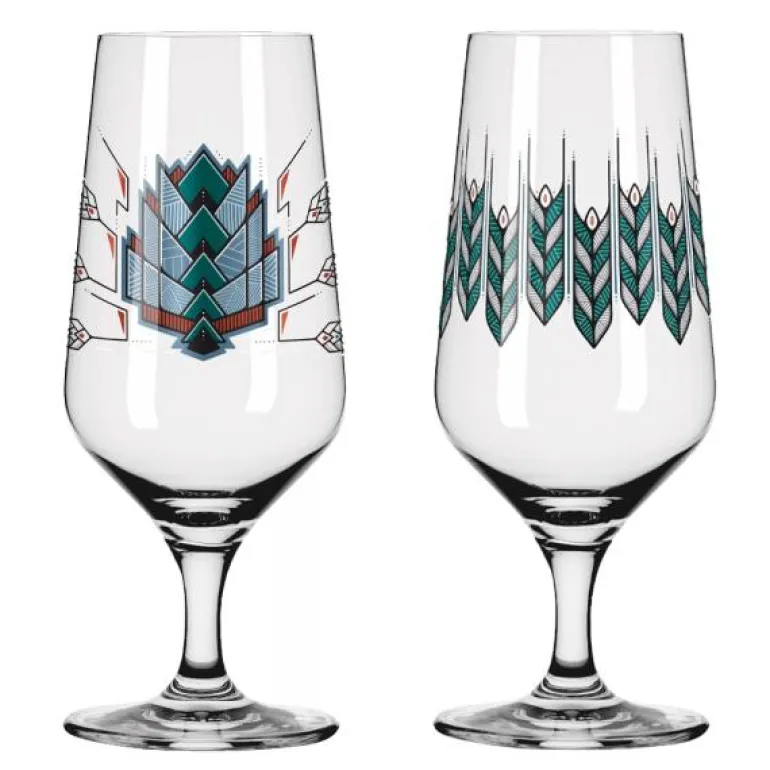 Sett med to ølgass, 2023, i serien Brauchzeit fra Ritzenhoff. Alle Brauchzeit glass er produsert i Marsberg, Tyskland, og er dekorert med motiv inspirert av sjøen. Ølglassene kommer i en fin gaveeske.