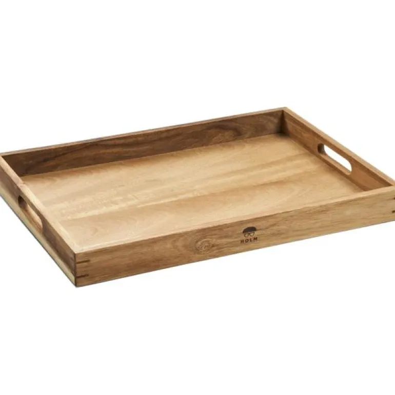 HOLM Brett 51 x 35 x 5 cm, med praktiske bærehåndtak og den perfekte størrelsen til å servere ettermiddagskaffen i stuen, snacks og kald drikke på verandaen, frokost på sengen.