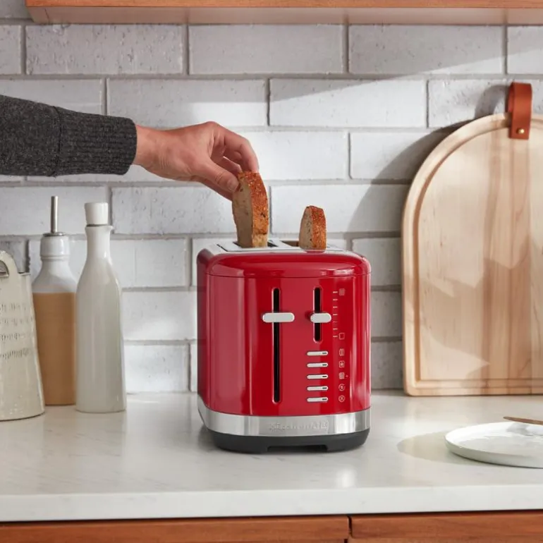 Brødrister med ekstra brede spor 5KMT2109EER 2 skiver i fargen empire red, fra KitchenAid. Med ekstra brede spor på 3,2 cm, kan brødristeren riste en rekke former og størrelser av brød, inkludert hjemmelaget brød, eller håndverksbrød. Den har manuell kontroll, og konstruksjon i helmetall, som gjør den slitesterk og bygget or daglig bruk.