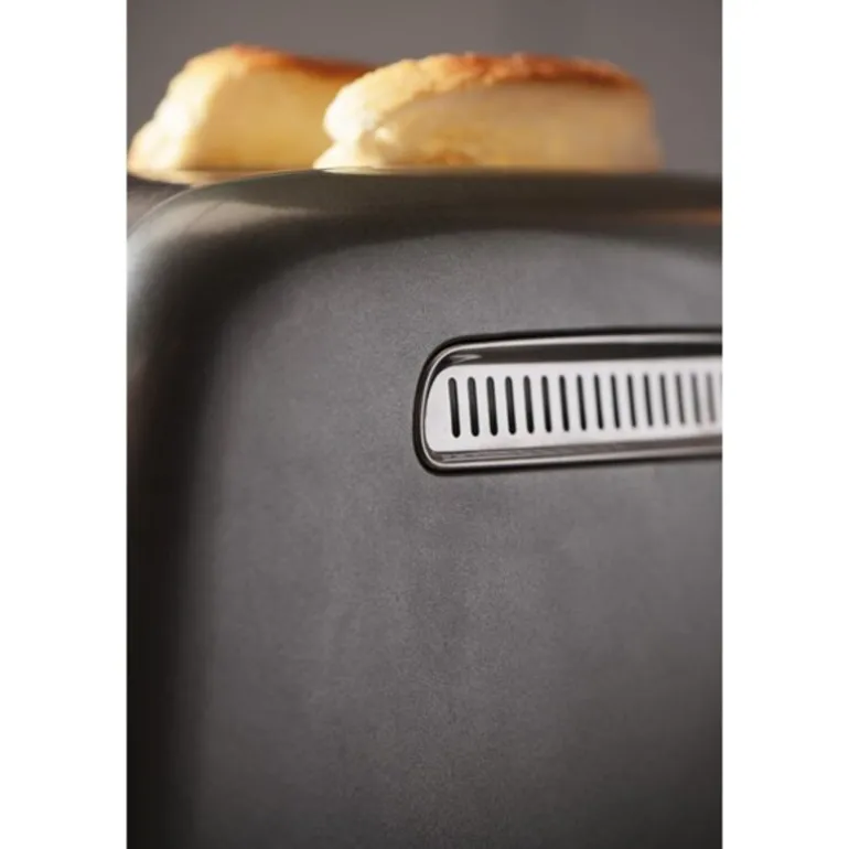 Den nye KitchenAid-brødristeren tilbyr den ultimate brødristeropplevelsen: Velg nøyaktig bruningspreferanse med syv bruningsinnstillinger. Har du det travelt om morgenen? KitchenAid-brødristeren vil holde de ristede brødskivene varme i opptil tre minutter når du ikke er på kjøkkenet. Brødristeren har også en frossenfunksjon som forsiktig tiner og rister frosne brødskiver, samt en bagel-funksjon som rister innsiden og kun varmer opp utsiden. Måltider om morgenen vil ikke lenger være en anstrengelse med KitchenAid-brødristeren.