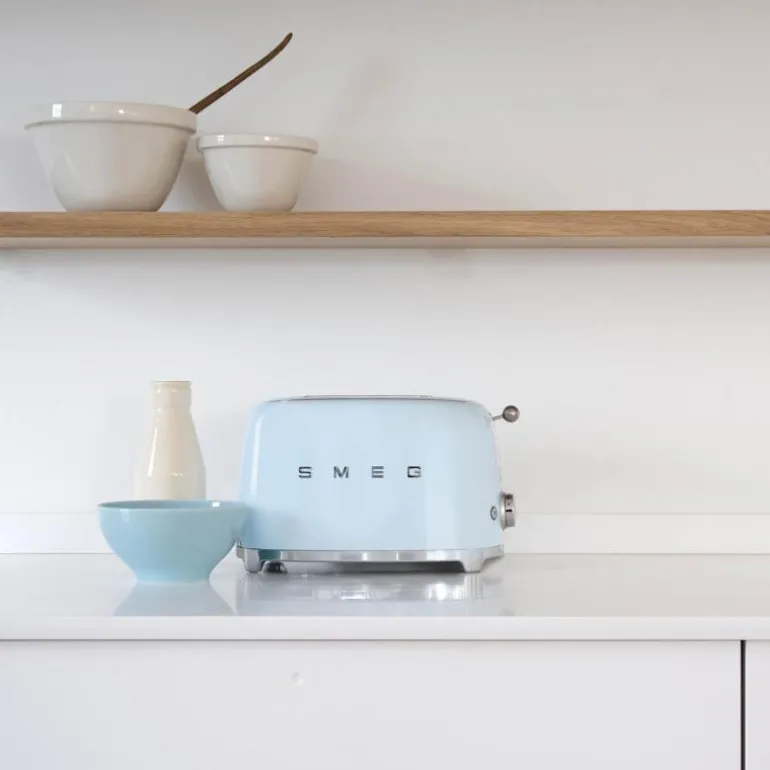 SMEG brødrister (TSF01) pastellblå kombinerer 50-talls retrodesign med moderne teknologi. Brødristeren rister to skiver om gangen og har 6 ulike innstillingsnivåer. Det stilfulle designet i pastellblå gjør brødristeren samtidig til et blikkfang på kjøkkenet ditt.