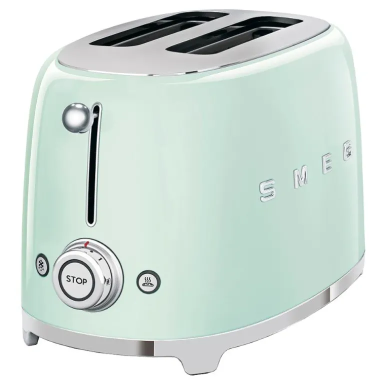 SMEG brødrister (TSF01) pastellgrønn kombinerer 50-talls retrodesign med moderne teknologi. Brødristeren rister to skiver om gangen og har 6 ulike innstillingsnivåer. Det stilfulle designet i pastellgrønn gjør brødristeren samtidig til et blikkfang på kjøkkenet ditt.
