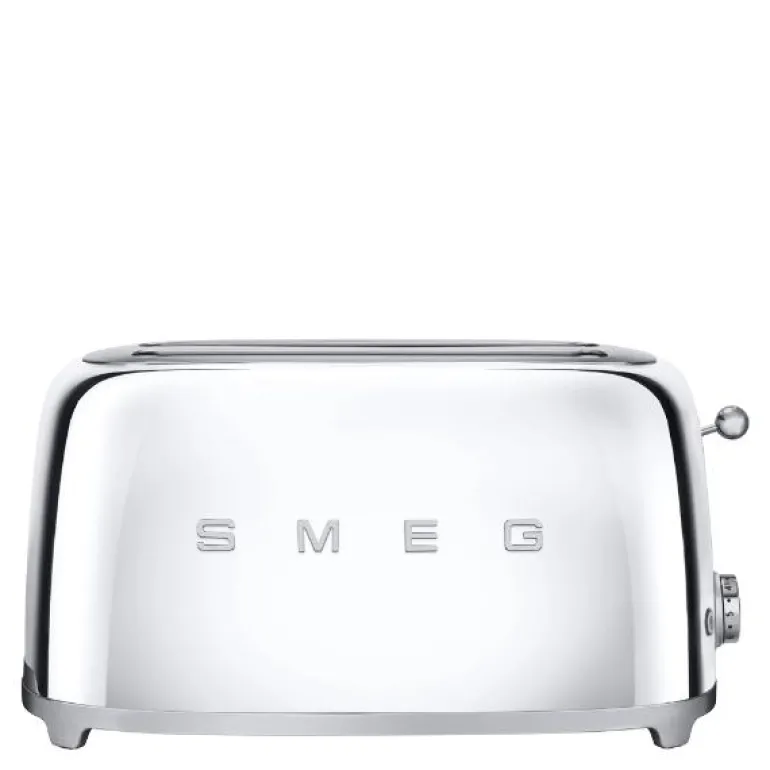 SMEG brødrister (TSF02) krom kombinerer 50-talls retrodesign med moderne teknologi. Brødristeren rister fire skiver om gangen og har 6 ulike innstillingsnivåer. Det stilfulle designet i krom gjør brødristeren samtidig til et blikkfang på kjøkkenet ditt.