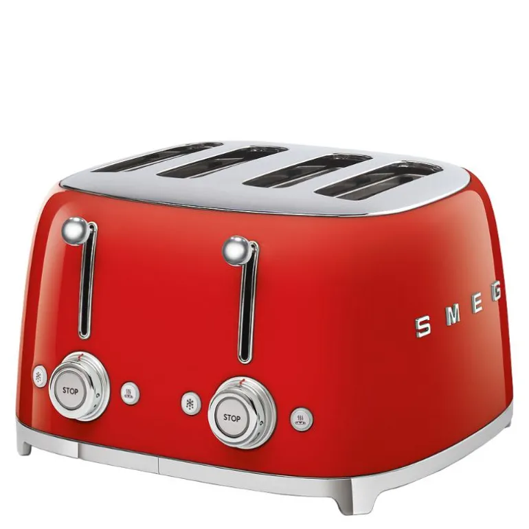 SMEG brødrister (TSF03) rød kombinerer 50-talls retrodesign med moderne teknologi. Brødristeren rister fire skiver og har 6 ulike innstillingsnivåer. Denne kvadratiske modellen har fire separate lommer hvor to og to aktiveres samtidig. Det røde, stilfulle designet gjør brødristeren samtidig til et blikkfang på kjøkkenet ditt.