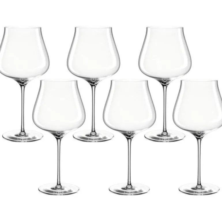 Brunelli glassserien gir en moderne variant av de klassiske vinglassene. Glasset med vanlige vinglass er vanligvis ovalt, men i denne nye kolleksjonen fra glassmestrene Leonardo er den bredeste delen av glasset plassert lenger ned, noe som øker smaken og nytelsen av vinen. Formen forsterker opplevelsen av vinen. Glassene i Brunelli-serien er funksjonelle, elegante og sofistikerte. De passer til alle slags anledninger, både hjemme og i restaurantmiljø. Glassene kan vaskes i oppvaskmaskin, er støt- og knusningsbestandige takket være kvaliteten på Teqton-glasset de er laget av. Volum: 77 cl