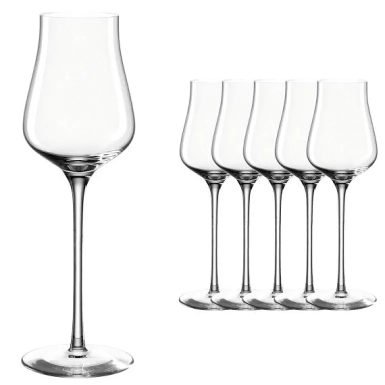 Grappaglass fra Leonardos glasskolleksjon Brunelli. Brunelli-glassserien utmerker seg ved sin funksjonelle design. Det er en elegant og sofistikert serie med glass som passer til en moderne livsstil og kan brukes hver dag. Serien er laget av Teqton-glass som er støtbestandig og beholder glansen, selv om du vasker glassene i oppvaskmaskinen. Glassene er behagelige å holde og deres form gir en optimal utvikling av drinkens aroma. Brunelli glass passer både i hjemmet så vel som i restaurant- og barmiljøer. Volum: 21 cl