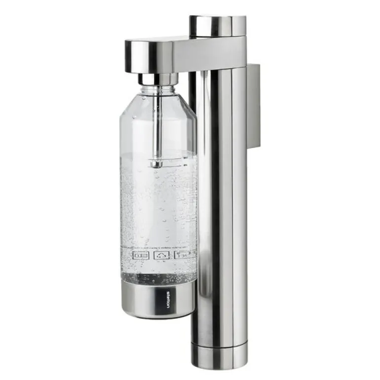 Den plassbesparende, vegghengte løsningen frigjør kjøkkenbenken og gir et moderne preg til ditt hjem. Karbondioksidpatronen er pent skjult i den slanke beholderen, og maskinen leveres med en flaske som komplementerer det elegante designet. Gjør din drikkeopplevelse både vakker og funksjonell med Brus kullsyremaskin fra Stelton.