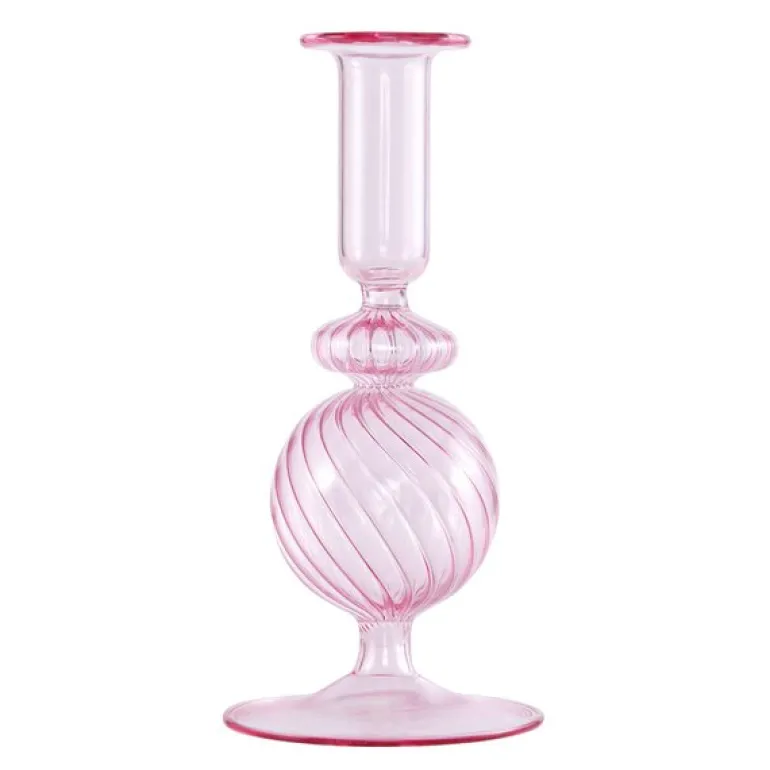Bubble lysestake 19 cm rosa fra Moonlight Copenhagen er en leken og elegant lysestake som tilfører hjemmet ditt et touch av farge og livlighet. Den er laget av munnblåst glass, og den delikate rosafargen gir et friskt og moderne uttrykk som passer inn i både klassiske og moderne interiørstiler. Den unike bobleformen skaper en dynamisk visuell effekt som gjør lysestaken til et lite kunstverk, og på grunn av den håndlagde prosessen vil hver lysestake ha små variasjoner i høyde, form og farge, noe som gir den et personlig preg. Bubble lysestake er tilpasset kronelys og er perfekt for å sette en stemningsfull atmosfære på spisebordet, i vinduskarmen eller som en del av en dekorativ oppstilling. Moonlight Copenhagen er kjent for sitt engasjement for kvalitet og håndverk, og denne lysestaken er intet unntak. Med sitt sjarmerende design og utsøkte håndverk er Bubble lysestake en vakker og funksjonell dekorasjon som bringer glede og eleganse til ethvert rom.