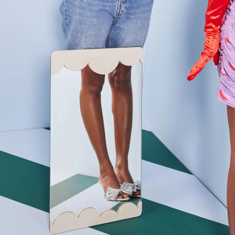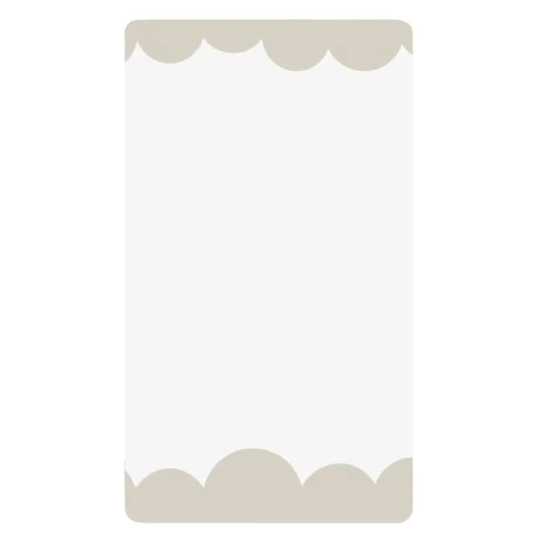 De myke avrundede formene er tegnet for hånd og skaper lekne halvsirkler som får oss til å tenke på luftige skyer. Rammen har et annet design hvor den ikke sitter på klassisk vis med fire sider, men kun på to av sidene. Dette gjør den lettere og muliggjør en jevnere kombinasjon med flere objekter. Rammen er spraylakkert mdf og har to forskjellige oppheng (horisontalt og vertikalt) for å kunne variere måten den bæres på. Et speil vi absolutt ønsker å se i mange hjem for å lyse opp et rom. Tilgjengelig i beige og burgunder. Størrelse 40×70 cm. Design Byon Studio.