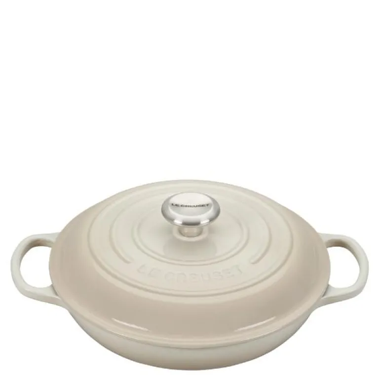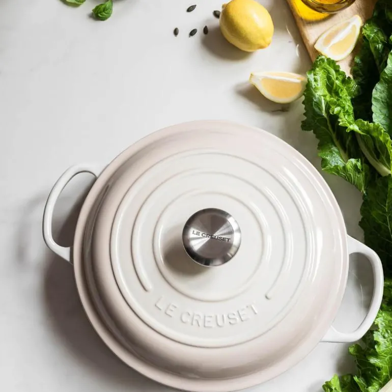 Le Creusets buffetgryte i støpejern har ideell form og størrelse for klassiske risretter som paella, risotto og couscous. Den brede og flate buffetgryten sikrer maksimal kontakt med varmekilden, og det er rikelig med plass til at ris og couscous kan utvide seg.
