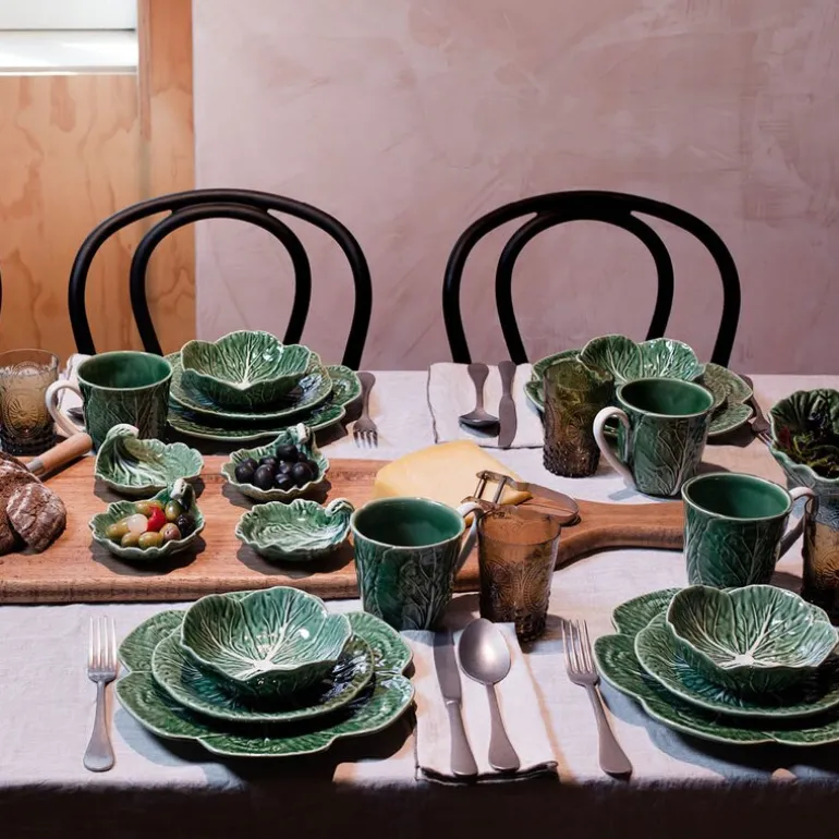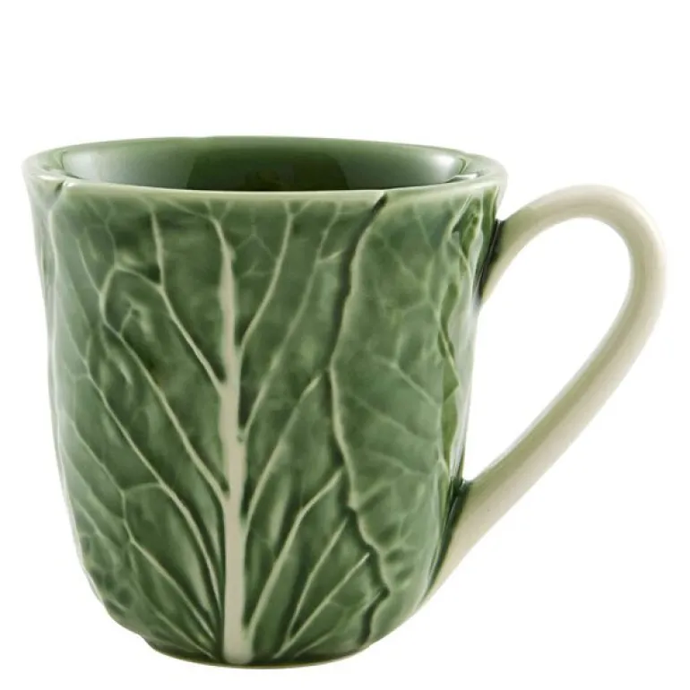 Cabbage krus fra Bordallo Pinheiro rommer 50 cl og er formet som et frodig kålblad med rik grønn glasur. Detaljene i keramikkens overflate gjør dette til mer enn et krus – det er et stykke kunst i hverdagen. Perfekt for kaffe, te eller kakao, og tåler både mikrobølgeovn og oppvaskmaskin. En hyllest til naturens former, laget i Portugal siden 1884.