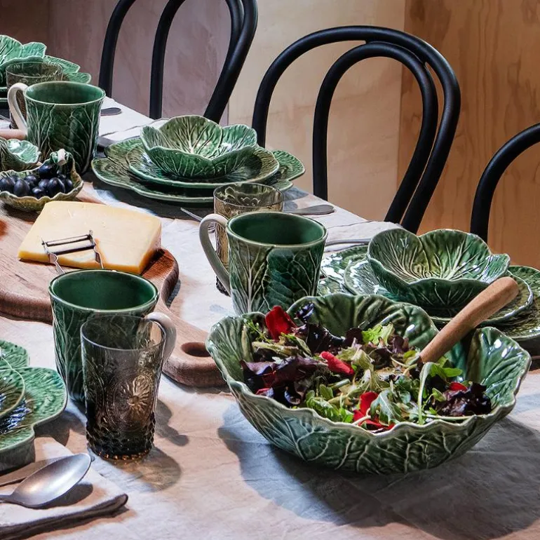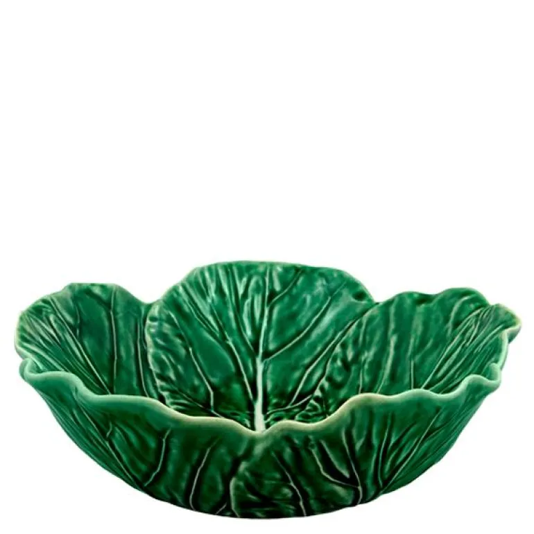 Cabbage Skål 22,5 cm fra Bordallo Pinheiro. Kjøkkenserien Cabbage er en serie med svært detaljerte og realistisk gjengitte skåler og fat som forestiller kålblader, designet av keramikeren Bordallo Pinheiro. Fatene og skålene blir et vakkert innslag til borddekkingen og det større fatet passer perfekt til ost, brød eller frukt.