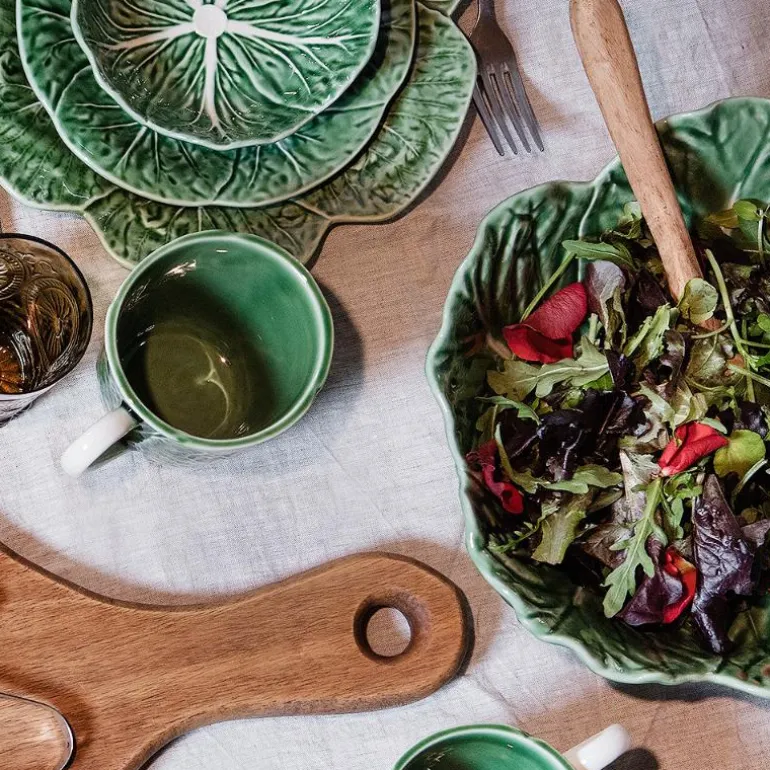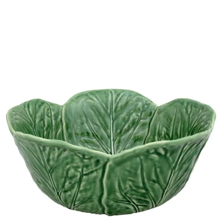 Cabbage Skål 29,5 cm fra Bordallo Pinheiro er en del av den imponerende kjøkkenserien Cabbage, som består av skåler og fat med svært detaljerte kålbladmotiver. Designet av den anerkjente keramikeren Bordallo Pinheiro, bringer disse fatene og skålene en vakker og unik estetikk til borddekkingen. Det større fatet i serien er ideelt for servering av ost, brød eller frukt, og alle produktene finnes i ulike størrelser. De tåler både oppvaskmaskin og mikrobølgeovn, noe som gjør dem både praktiske og dekorative.
