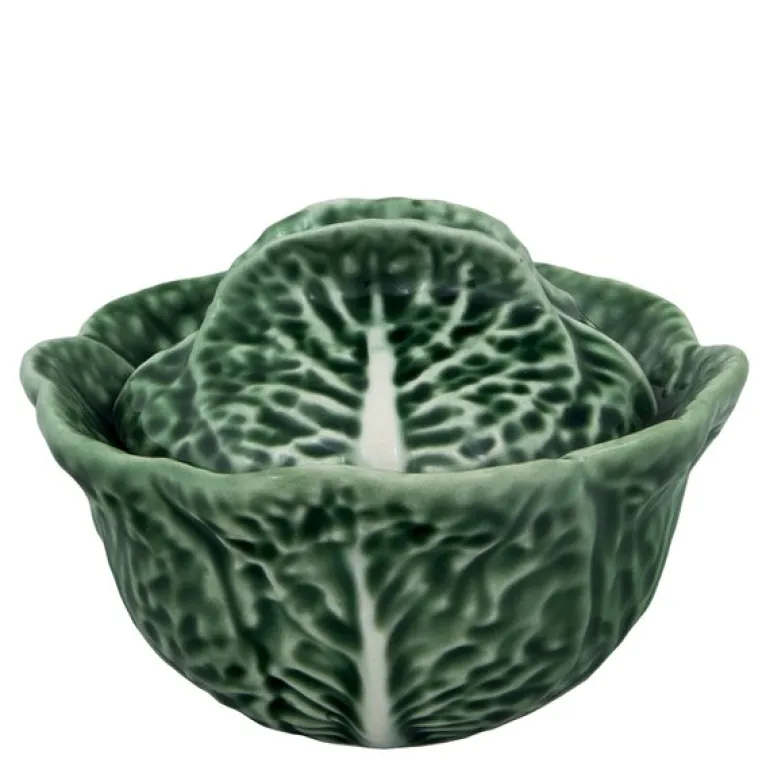 Cabbage skål med lokk fra Bordallo Pinheiro er en dekorativ og funksjonell keramikkdel formet som et grønt kålblad. Skålen måler 13,5 cm og er perfekt til servering eller oppbevaring med et unikt uttrykk. Serien kombinerer portugisisk håndverk med naturtro detaljer og tåler både oppvaskmaskin og mikrobølgeovn. En leken klassiker fra Bordallo Pinheiro – etablert i 1884.
