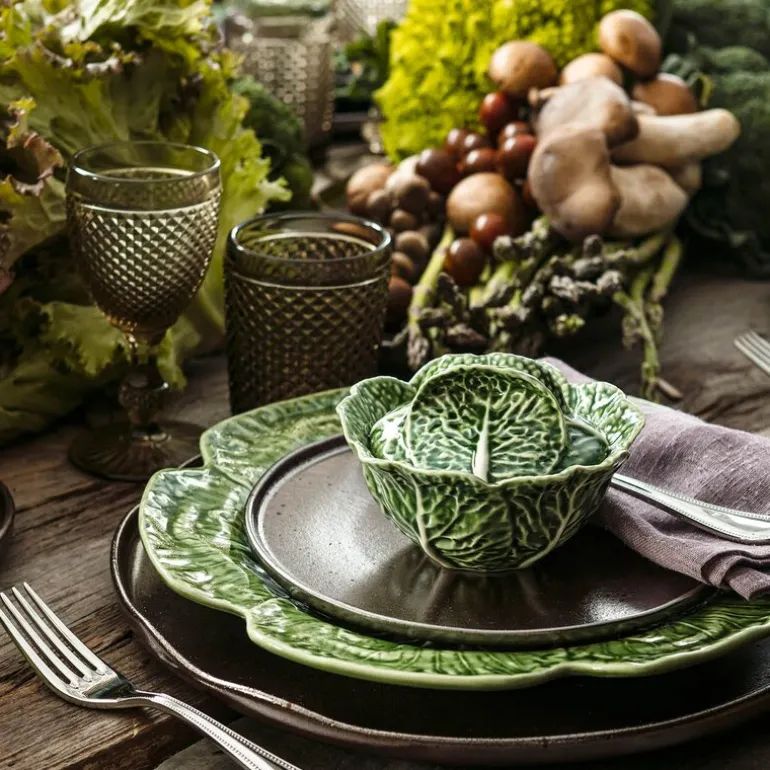 Cabbage skål med lokk fra Bordallo Pinheiro måler 15,3 cm og er formet som et frodig kålblad – et dekorativt og praktisk innslag i kjøkkenet. Perfekt til snacks, tilbehør eller dekorativ oppbevaring. Serien kombinerer portugisisk håndverk med naturtro former og tåler både oppvaskmaskin og mikrobølgeovn.