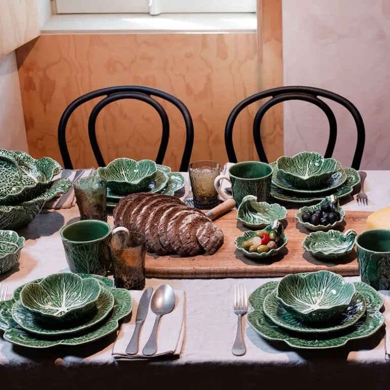 Cabbage terrin fra Bordallo Pinheiro rommer 2 liter og er formet som et stort, grønt kålblad – detaljert, håndglasert og full av karakter. Perfekt til supper, gryter eller som serveringsbolle ved større anledninger. Tåler både oppvaskmaskin og mikrobølgeovn. Et ekte portugisisk kunstverk på bordet.