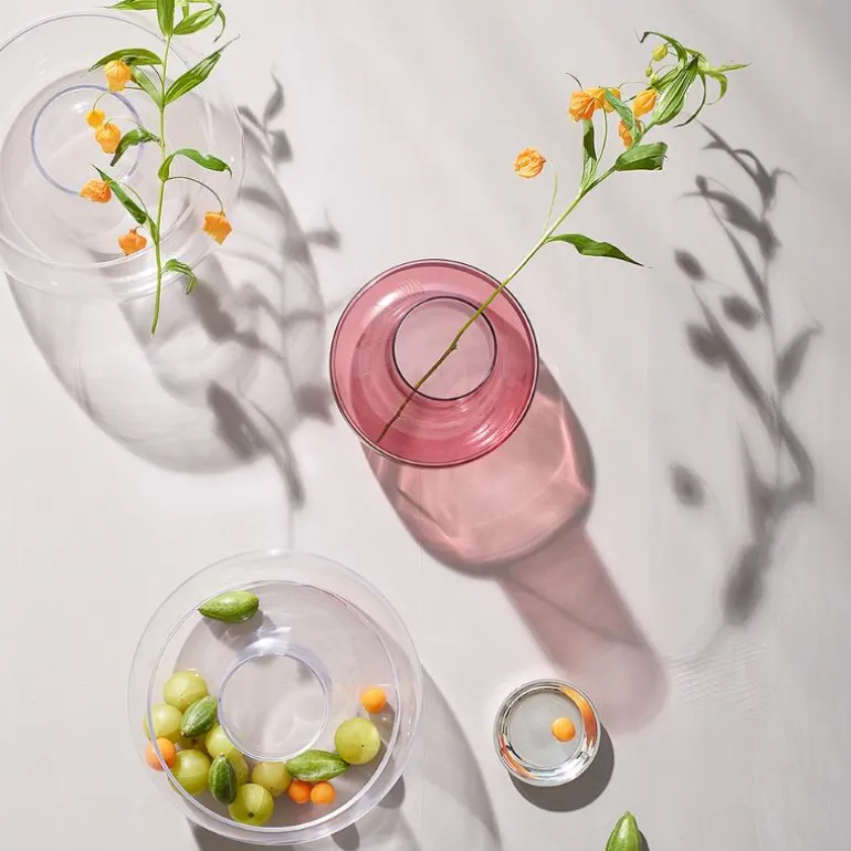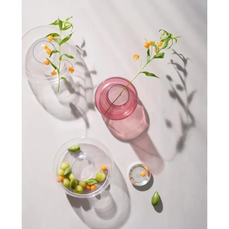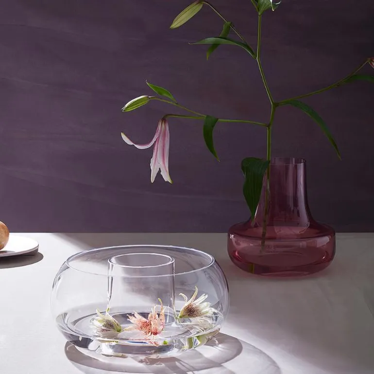 Den lekre og elegante Cado-vasen i plomme er en todelt vase i munnblåst glass som måler 17 cm i høyden. Den nederste delen av vasen er i en nydelig plommefarge med smal hals som gjør den perfekt til fine blomsteroppsatser. Den øverste delen er laget i klart glass, og her kan du sette blomsterhoder i vann eller pynte med planter, grankongler og mose. Med Cado-vasen kan du skape flotte planteinstallasjoner med referanser til japansk blomsterkunst.