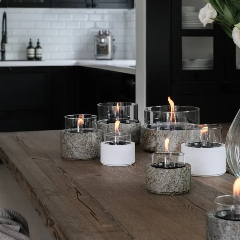 TenderFlame Café bordlykt i den vakre nyansen earth stone er skapt for å gjøre enhver setting mer stemningsfull. Med sitt elegante design og den livlige flammen, sprer lykten en behagelig varme og lys som umiddelbart gir et løft til både innendørs og utendørs omgivelser. Plasser den på spisebordet under en hyggelig middag, på stuebordet for en rolig kveld, eller utendørs for å skape den perfekte atmosfæren på terrassen.