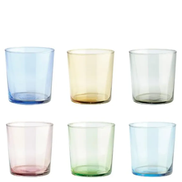 Café vannglass 34,5 cl 6 stk multi er et sett med seks vannglass fra Aida rommer 34,5 cl og gir bordet ditt et fargerikt uttrykk. Hvert glass har en unik farge som fanger lyset vakkert, og de passer perfekt til vann, juice, vin og cocktails. Glassene kan kombineres for en personlig stil og tåler både varme og oppvaskmaskin, noe som gjør dem like praktiske som stilfulle.