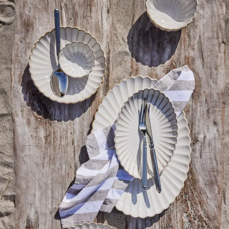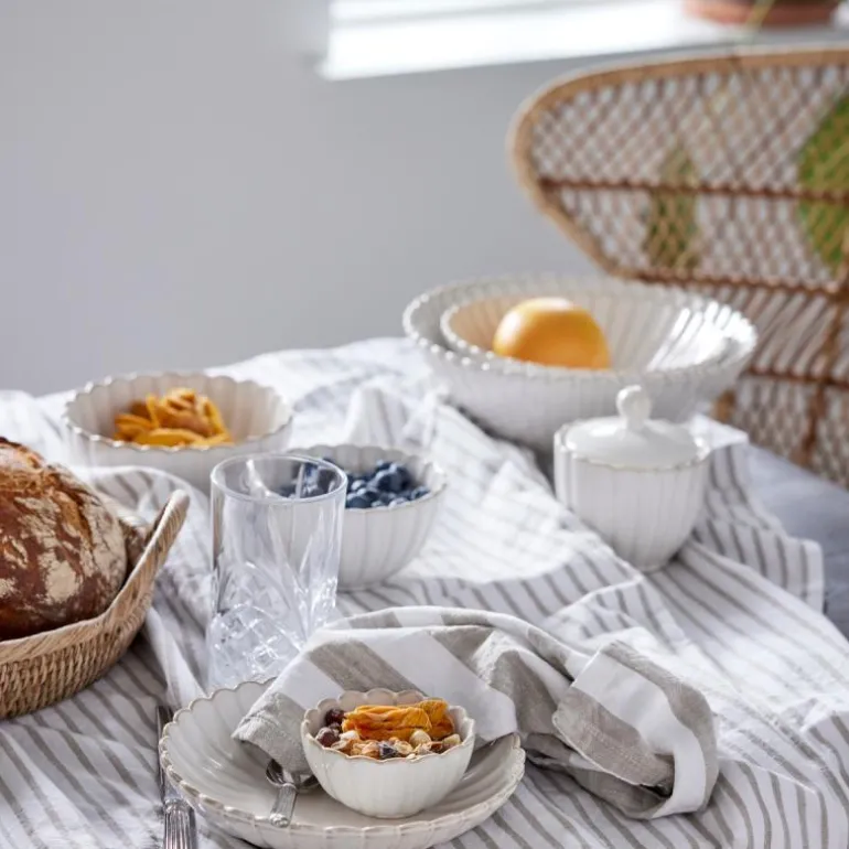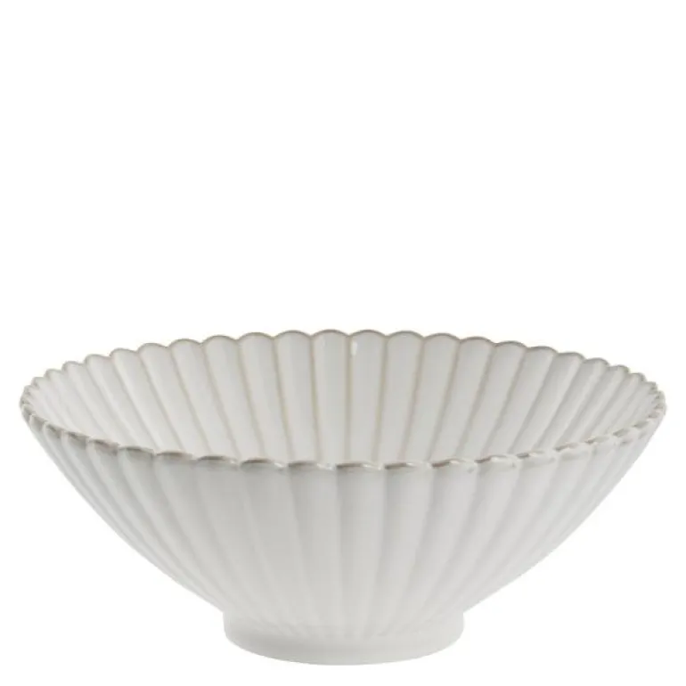 Lene Bjerre Camille skål 10×25 cm i fargen råhvit. Camille serveringsskål gir en luksuriøs og elegant måte å servere både familie og gjester på. Laget av høykvalitets porselen, er denne serien ideell for enhver anledning, fra formelle middager til koselige familiemåltider. Med sitt unike design i delikate nyanser av elfenben og beige, tilfører dette servisesettet et feminint preg til spisebordet ditt, noe som gjør det virkelig vakkert.