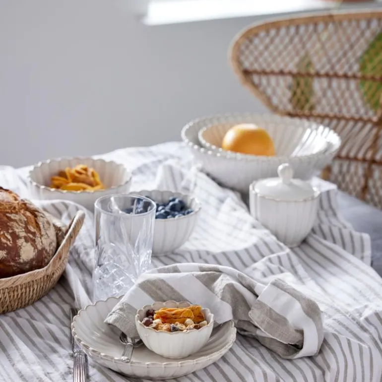 Camille skål 6,7×12,5 cm råhvit fra Lene Bjerre gir en luksuriøs og elegant måte å servere både familie og gjester på. Laget av høykvalitets porselen, er denne serien ideell for enhver anledning, fra formelle middager til koselige familiemåltider. Med sitt unike design i delikate nyanser av elfenben og beige, tilfører dette serviset et feminint preg til spisebordet ditt, noe som gjør det virkelig vakkert.