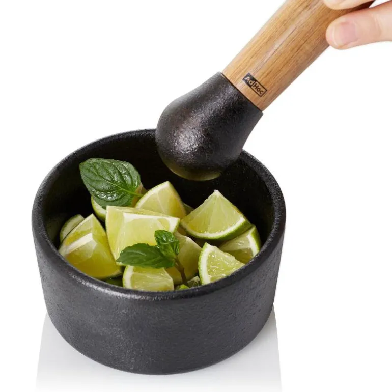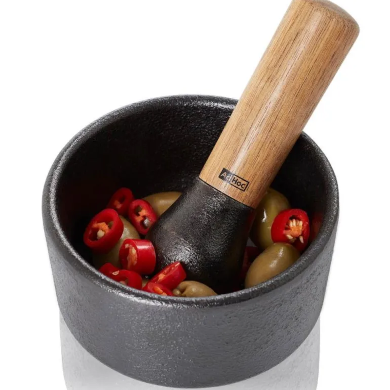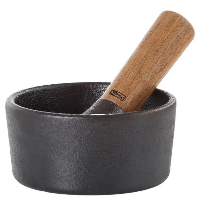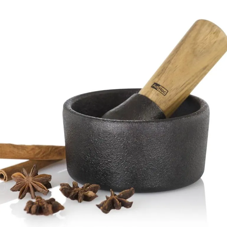 Ikke bruk noen skarpe rengjøringsprodukter da disse kan skade produktet. Misfarging kan forekomme over tid. Dette kommer fra krydder. For å forhindre misfarging, rengjør stampen og morteren så snart som mulig etter hver bruk. Morter og stampen skal kun rengjøres ved hjelp av vann og en oppvaskbørste. Tørk begge delene forsiktig etter skylling og smør støpejernsoverflater med nøytral smak matolje. Det kan oppstå flekker med rust hvis støpejernsoverflatene ikke tørkes grundig. Bruk en myk svamp for tøffe flekker. Støpejern er ikke egnet for oppvaskmaskin!AdHoc har siden 1995 utviklet, designet og produsert kjøkkenutstyr ned til minste detalj. AdHoc har mottatt flere priser nasjonalt og internasjonalt for sine tidløse, vakre og moderne produkter. Samspillet mellom funksjon og form skal gjøre folk glade og forbedre matlagingen ytterligere. Produktene til AdHoc har enestående kvalitet og lang holdbarhet.