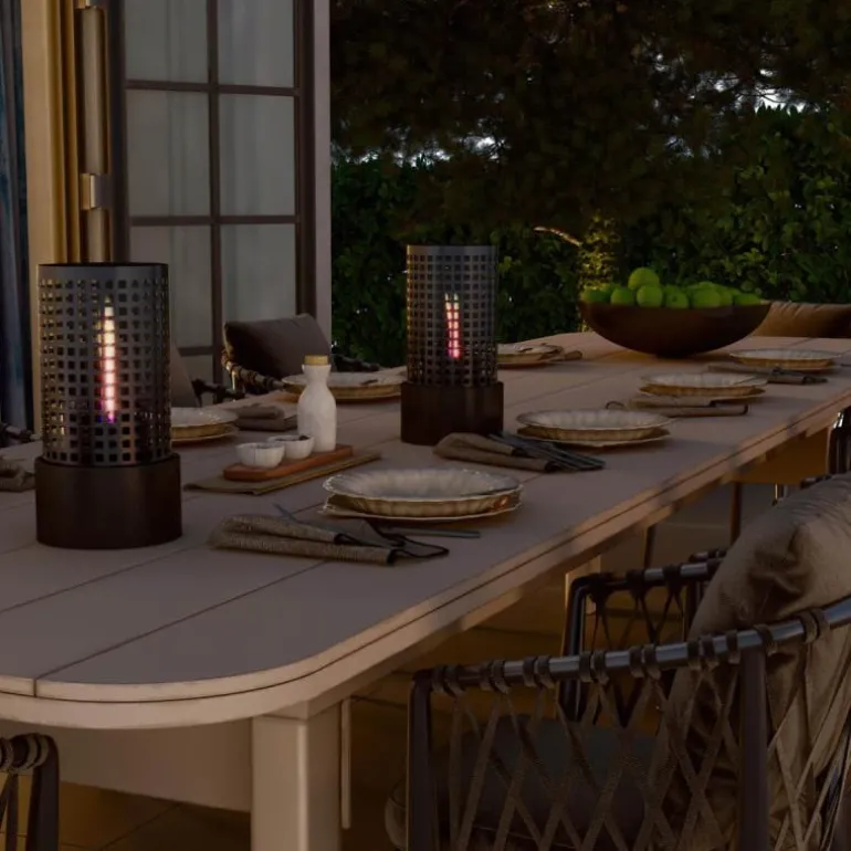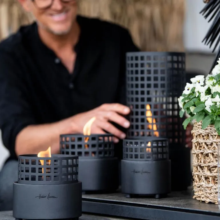 Camps Bay bordlykt i svart fra TenderFlame er en elegant og stilren lykt designet av Halvor Bakke. Den høye, dekorative formen tilfører både karakter og varme til ethvert rom eller uteområde. Med sine levende flammer skaper den en stemningsfull atmosfære, enten du plasserer den på spisebordet, uteplassen eller en skjenk.