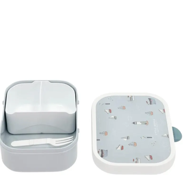 Robust og romslig matboks fra Mepal med Sailors Bay motiv. Matboksen har en smart og effektiv lukkemekanisme, som er enkel for barna å betjene. Matboksen er 17,5 x 13 x 6 cm, og den inneholder en liten gaffel og en løs innsats med to små rom.