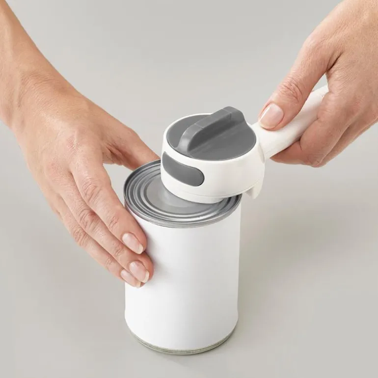 Can-Do Plus er en genial og kompakt åpner som gjør det til en lek å åpne de fleste typer bokser. Med sin store og lett-vri mekanisme er den designet for rask og enkel bruk. Når du begynner å vri, låser den seg automatisk på lokket, og med en enkel knapp kan lokket løsnes og kastes etter fjerning.