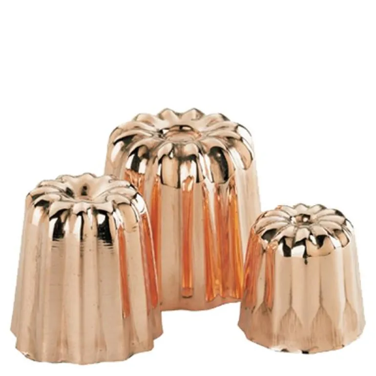 Forvokset kobberform med riller, spesielt designet for å lage Canelés, de berømte kakene fra Bordeaux. Ren tradisjonell form og materialer.