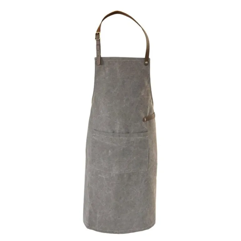 Canvas forkle 82×62 cm grå fra Crafted er et stilfullt og funksjonelt forkle laget av vasket lerret med elegante skinn-detaljer. Håndlaget i Nederland, kombinerer dette forkleet slitesterkt materiale med et raffinert design. Skinnbåndene rundt halsen og livet kan justeres for å passe ulike størrelser, med midjebåndet justerbart fra 85 til 125 cm. Skinn-detaljene kan enkelt tas av, og forkleet kan vaskes på 30 grader, noe som gjør det lett å holde rent.
