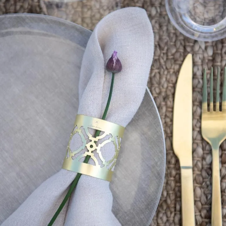 Dette delikate mønsteret ble overført til serviettringen, som er laget av metall med en eksklusiv matt finish. Dette gir en kombinasjon av klassisk og moderne følelse, som vil løfte enhver borddekning.