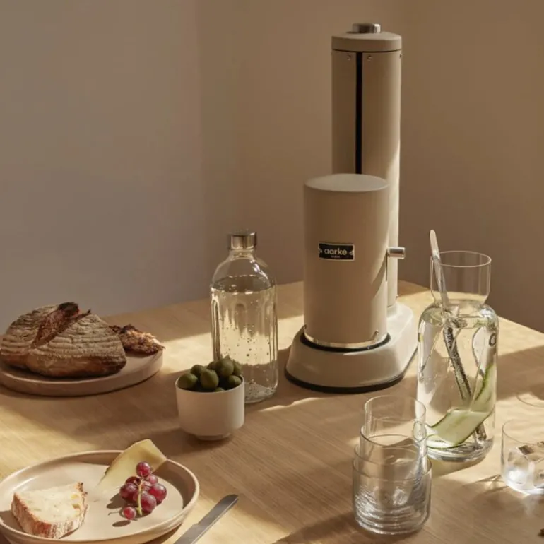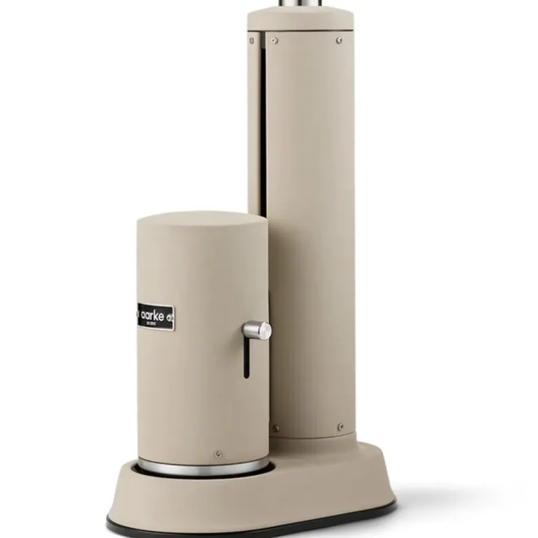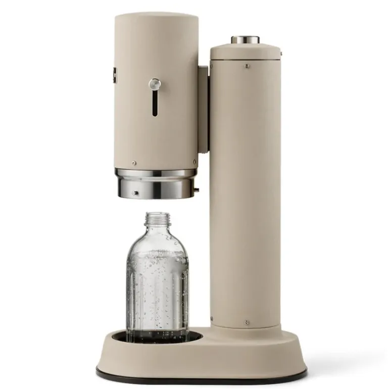 Aarke Carbonator Pro i sandfarge er en stilren kullsyremaskin som kombinerer moderne design med funksjonalitet av høy kvalitet. Maskinen er laget av solid rustfritt stål, noe som sikrer både holdbarhet og et tidløst uttrykk. Den leveres med en praktisk glassflaske som tåler oppvaskmaskin, noe som gjør rengjøringen enkel og praktisk i hverdagen.
